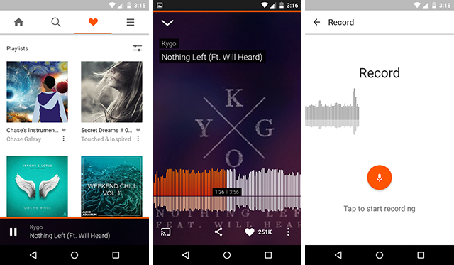 Di sini Anda juga bisa merekam suara Anda sendiri atau mengcover sebuah lagi sehingga bisa di dengar oleh jutaan orang di dunia. Untuk menjadi terkenal tentunya juga bisa Anda raih jika memang Anda fokus, tetapi sekedar untuk mendengar musik dari penyanyi – penyanyi berbakat tidak usah lagi ke tempat konser cukup aktifkan aplikasi soundcloud dan dapatkan lagu – lagu menarik dengan suara yang merdu juga tentunya.
