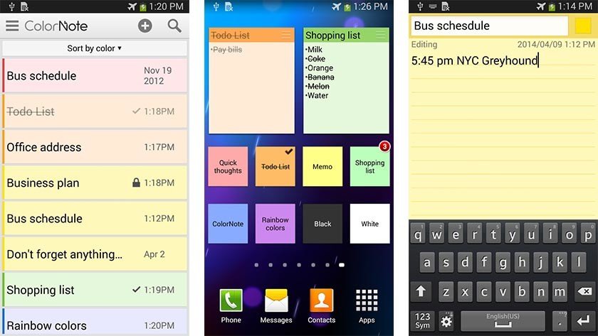 Yang pertama pada ulasan yang akan kami bahas adalah ColorNote. Ini adalah aplikasi sederhana yang memungkinkan kamu untuk membuat catatan teks, daftar, dan catatan apapun yang kamu mau buat. Fitur yang sesuai dengan namanya adalah kemampuan untuk merubah warna latar belakang catatan yang tujuannya adalah untuk membantu kamu mengorganisir.