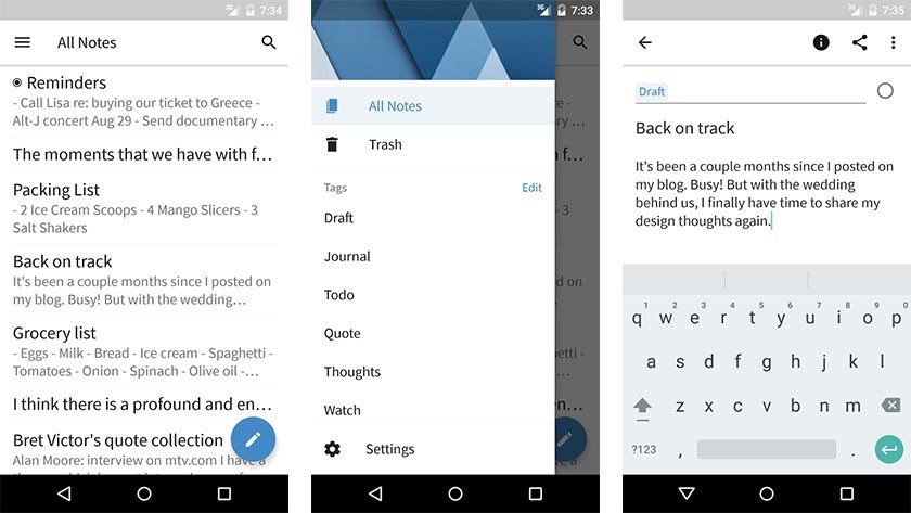 Simplenote juga aplikasi peraih penghargaan, dan sekarang telah tersedia untuk os android. Simplenote adalah sebuah cara yang gampang untuk menyimpan catatan, daftar serta ide lainnya. Catatan yang telah kamu buat tetap dapat singkron dengan semua perangkat kamu bebas dari pembayaran.