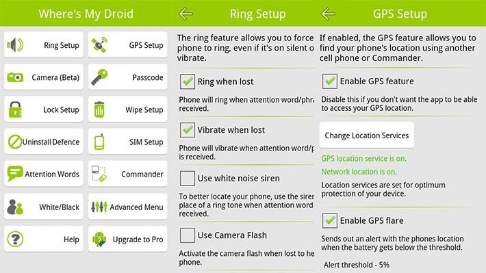 Wheres My Droid adalah aplikasi yang lain dengan gaya minimalis yang hanya mengerjakan yang penting untuk di kerjakan. Dalam versi gratis, kamu dapat menemukan fitur alarm. Melacak hp kamu yang hilang, dan fitur khusus untuk menemukan hp yang hilang dalam keadaan posisi hp hampir mati. Dan berbagai fitur lainnya.