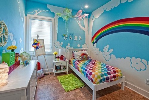 Dari keindahan warnanya itulah banyak anak-anak yang senang melihat pelangi ini karena terlihat cantik dan berwarna-warni. Maka kita dapat jadikan ide untuk membuat atau membuat desain kamar si kecil dengan nuansa pelangi yang cerah.