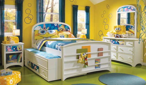 Desain Kamar Tidur Anak Nuansa Kuning Dengan Tema Spongebob