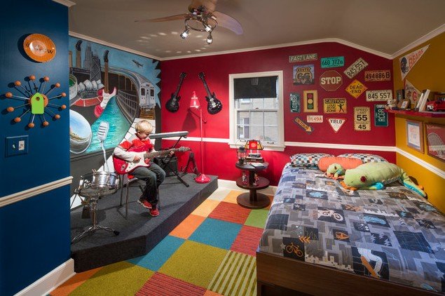 Tema Panggung Musik Untuk Desain Kamar Tidur Anak Laki-Laki