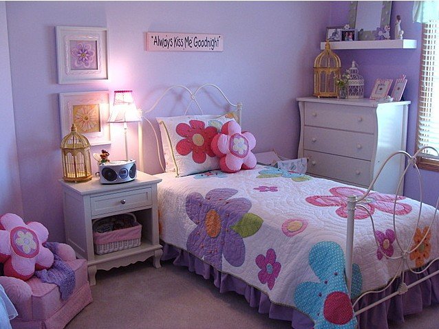 Dekorasi Kamar Anak Corak Bunga Nuansa Warna Ungu