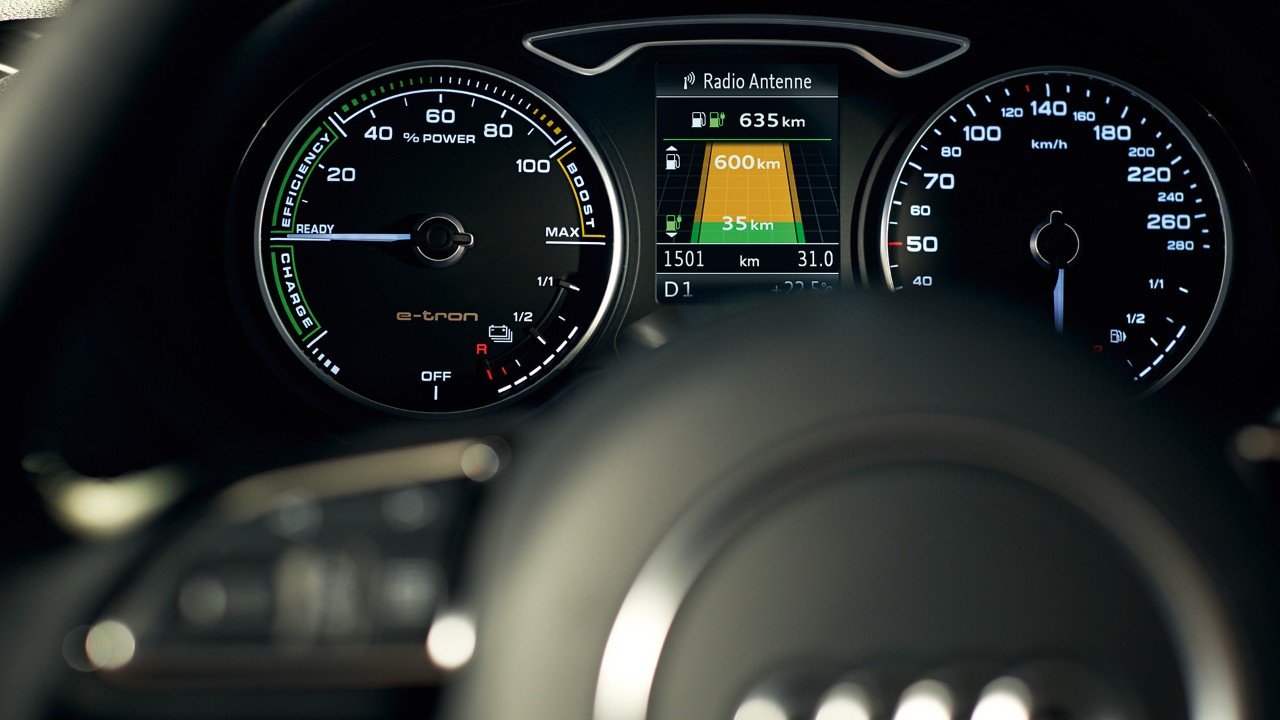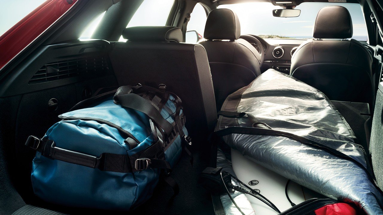 Pengalaman fungsi-fungsi dipakai dengan maksimal. A3 Sportback desain e-tron yang ramping, proporsi yang baik dan praktis. Posisi modul pintar baterai diletkan dengan kompak pada bagian bawah kursi belakang sehingga untuk memastikan ruang bagasi tidak pernah terganggu. Informasi Volume bagasi adalah 386 liter.