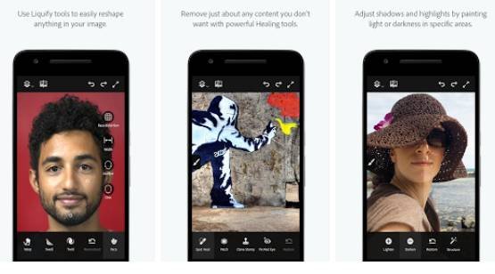Aplikasi photoshop android berikut ini adalah aplikasi yang sangat powerfull untuk melakuan editing gambar dan restorasi. Adobe Photoshop Fix mampu melakukan retouching gambar dengan mudah dan pemulihan gambar di ponsel android Anda.