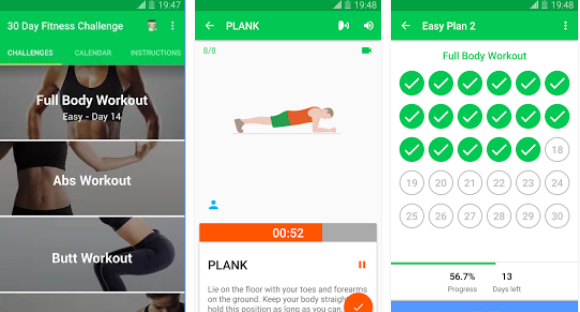 Aplikasi fitness di rumah atau workout di rumah cocok bagi siapa saja yang peduli akan kebugaran dan kesehatan. Dengan aplikasi yang bernama 30 Day Fitness Challenge Anda dapat melakukan aplikasi olahraga diet kapan saja.