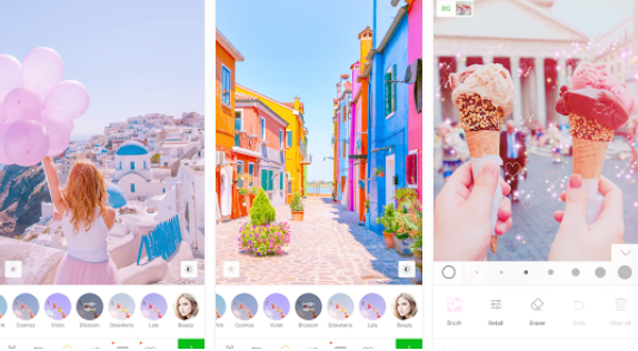 Pengguna aplikasi ini bisa menambahkan filter yang keren-keren dalam hasil foto jepretan mereka sehingga hasilnya akan tampak lebih jernih dan indah. Selain itu pun penggunanya juga bisa dapat mengedit brightness, contras, dan mengatur tingkat kehalusan foto dengan fitur smoothen yang tersedia di aplikasi android ini.