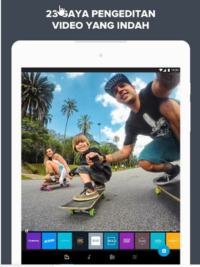 Aplikasi Kamera GoPro untuk android ini punya fitur yang luar biasa berguna buat kamu yang pengen banget videonya keren ala GoPro. Kamu bisa mengutak-utik video yang bisa langsung ditransfer ke aplikasi ini dengan efek-efek gambar, suara serta musik yang akan sangat terlihat profesional.